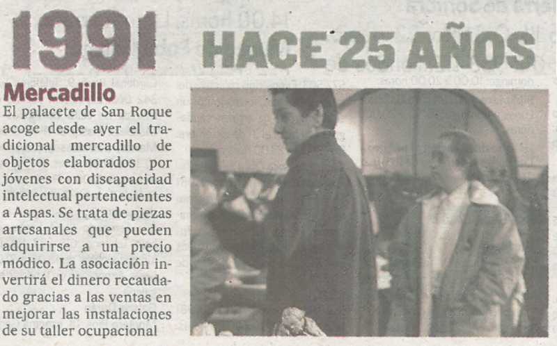 Hace 25 años, la Asociación ASPAS celebraba el tradicional mercadillo de productos artesanos en el Palacete de San Roque.
