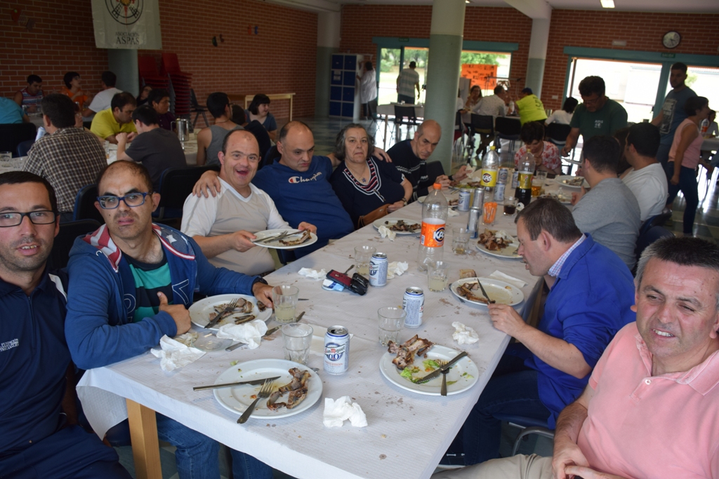 A celebración comezou á hora de comer, degustando un estupendo menú con sardiñas, churrasco de porco e xelado. A continuación a festa trasladouse ao salón, onde toda a familia de ASPAS gozou da música e do baile.